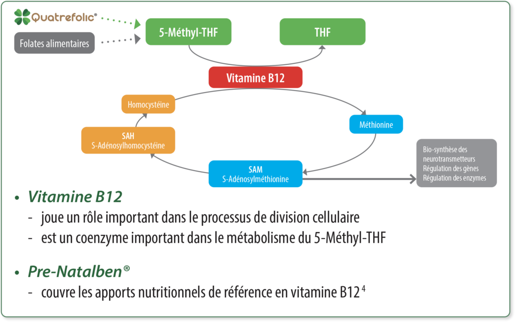Tous les produits de la famille NATALBEN® contiennent du Quatrefolic® : une forme innovante de folate qui ne nécessite pas de métabolisation et peut donc être utilisé immédiatement par les cellules.