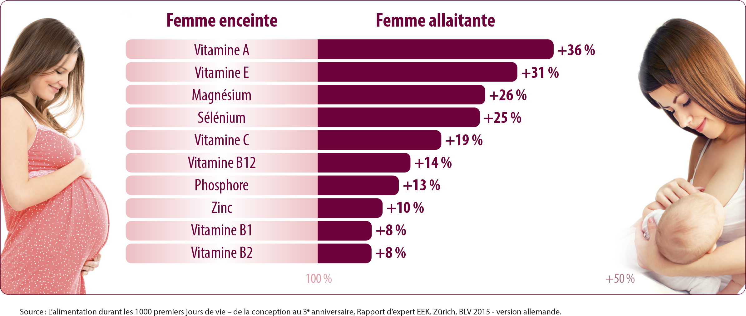 Durant l’allaitement, les besoins nutritionnels sont encore plus importants que pendant la grossesse2,3 :